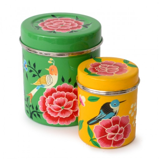 Boîte en acier inoxydable peinte à la main, avec couvercle.