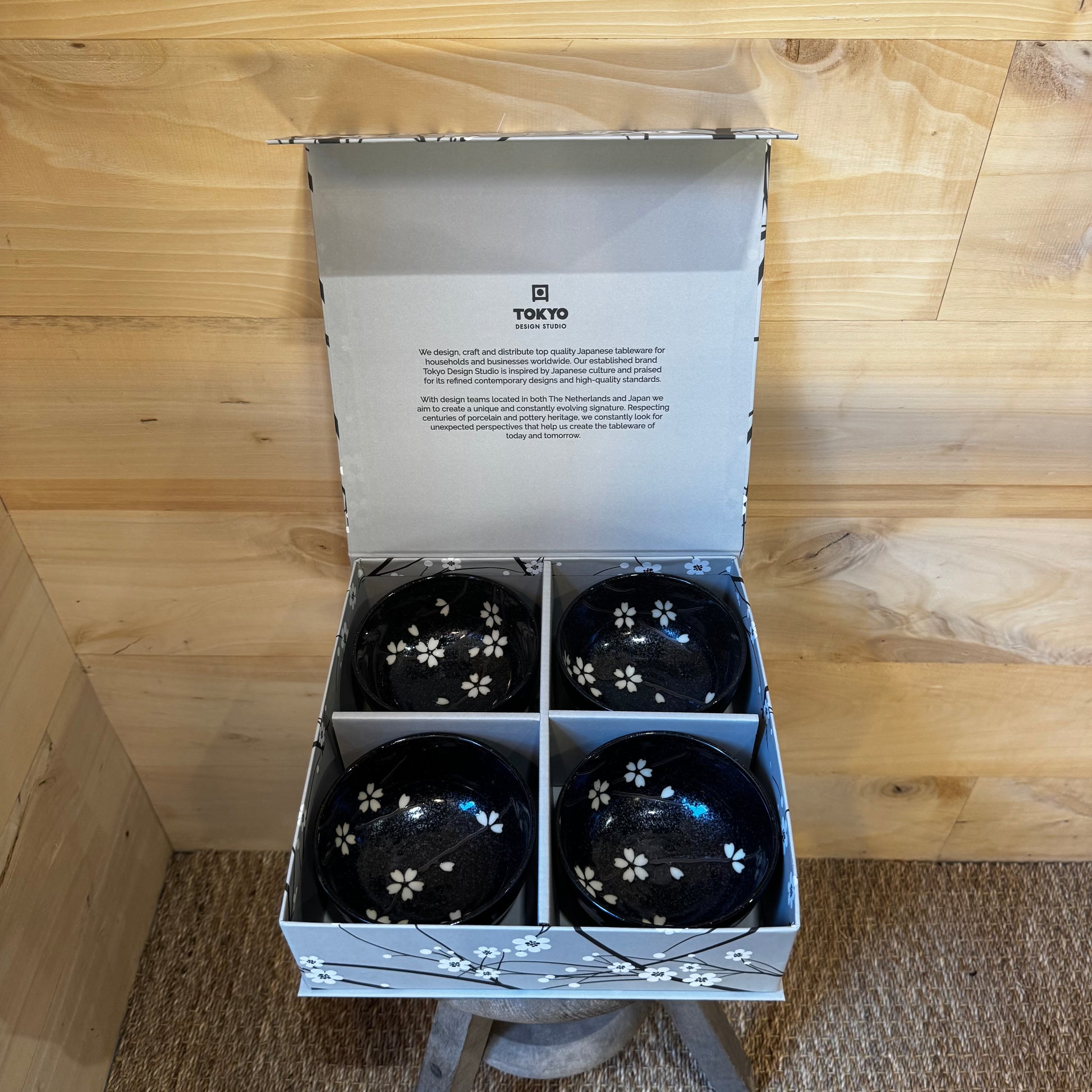 Sakura Bowl Giftset 4pcs 12.5x7cm 450ml Black