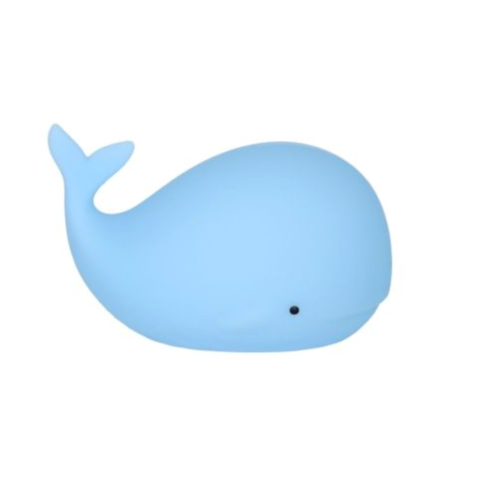 Cette petite veilleuse souple représentant un bébé baleine s'illumine d'une belle lumière bleu ciel toute douce pour accompagner bébé vers les plus beaux rêves. Grâce à sa couleur et sa douceur, la veilleuse Nino le baleineau va veiller sur bébé toute la nuit pour chasser les cauchemars et l'emporter dans de jolis rêves. Nul doute qu'elle facilitera l'endormissement et l'apaisement en cas de réveils et chagrins.
